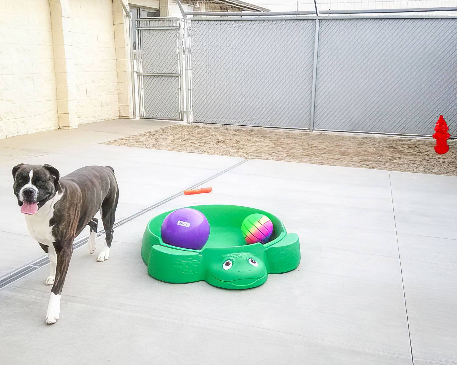 We want your dogs to feel at home so we created the Dog Lounge where they can play, nap, and watch TV if they want. For the more active pups, our Outdoor Play Area is equipped with a privacy fence and special safety features to stop the climbers and the diggers, but large enough to run around.